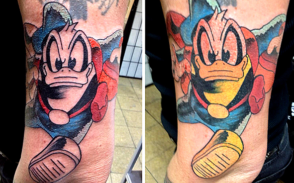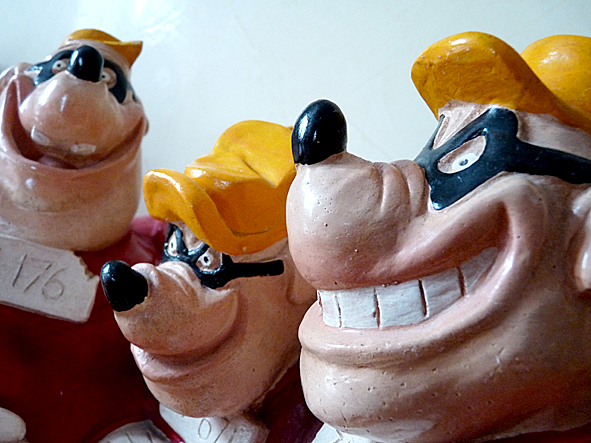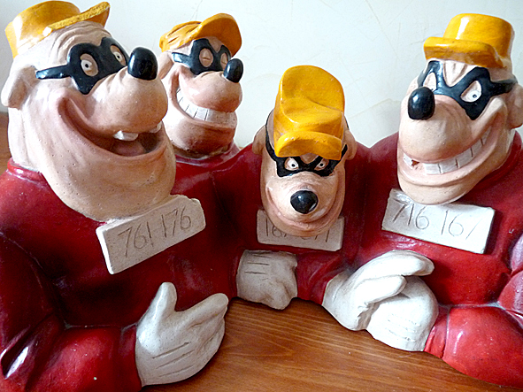over the years i am collecting DISNEY figurines. every time when i went to DISNEYLAND PARIS i bought one of these precious pieces. but today they are hard to get. at the souvenir shops you just can get f***ing plastic shit without a soul. my DAGOBERT, DONALD, MICKEY, GOOFY, PLUTO and the PANZERKNACKER are made of ceramic. each piece is about 15 to 30 cm high. especially the PANZERKNACKER are really heavy – i think about 4 kg. i bought them on a flea market from a comic nerd nearly 15 years ago for more than 300 DEUTSCHE MARK. and i love this one; it is a special peice you can’t get anywhere anymore. DISNEY is with me since i can remember and with my son LEVI it is the same. he is 6 years young and went 3 times to PARIS to visit MICKEY & Co. in two weeks DONALD will complete my DISNEY tattoos on the right arm. pics | LTG