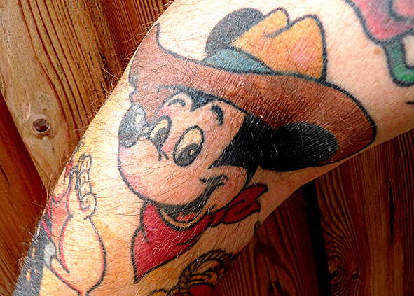 Yesterday I went to the customs to pick up my “Greaser Mick” collaboration t-shirt. Following TSY “THE SELVEDGE YARD” from the first days on I am interested in checking cool blogs, I was so happy to get this extraordinary t-shirt. What a cool motive for me as a great DISNEY and Rockabilly aficionado. The illustration was made by NICK THE TAILOR a Philadelphian artist and tattooist – very well done Nick! The shirt is high quality printed in Philadelphia on a 100% cotton American Apparel stuff made in the USA. Because of a good working networking I saw this great shirt the first time at DON SCHWEDEs Facebook site linked to his great blog “THE LAST DON” – thx. pics | LTG