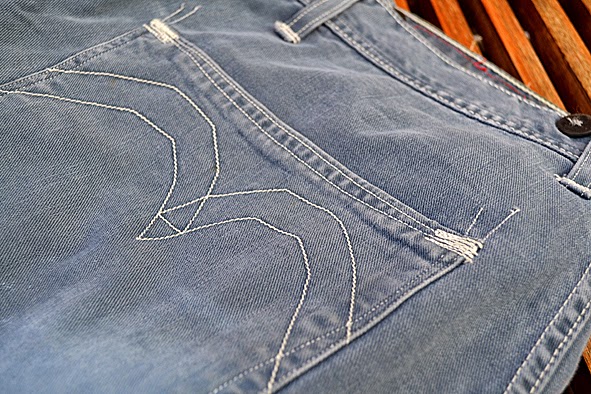 Last week I got a big parcel from UWE E MAIER c/o AMTRAQ DISTRIBUTION. What a surprise, he send me the 1ST PAT-RN LANZA JACKET. What an indigo beauty! I was, no I am restless excited about this 1960s Italian work wear inspired jacket. The LANZA is made in Italy of a double indigo selvedge denim. The fit is classical perfect without any needles “Schnick Schnack”, but so nice details like the selvedge seams inside and the horn buttons. It features one button flap chest pocket, 2 lower inset pockets, adjustable cuffs, rounded collar with a detachable throat tab, rear cinch and selvedge detail on the inside placket. It was delivered unwashed – so the photos I did show the Jacket unwashed. While i am writing this lines LANZA gets its first reversed side wash – cold and light. Because of its nice indigo dying it colors slightly even when I did the photos.The jaakcet is available @ VMC, LowDownondenim, Zenit, JeansLife and The Bureau Belfast, where I got the 2 pics which show the washed LANZA – THX! I am really impressed by this great 1ST PAT-RN stuff – love this stuff expecting some more pieces next time. Christian Berto does a great job.