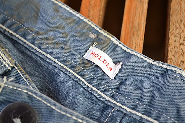 this is the second pair of LEVI’S RED denim i found in my box. the “HOLDEN” must be from 2003 or earlier. it has a wide carpenter fit, a classic workpant with no backriser and a high hem. straight leg, bearing two unequal slash pockets and knife pocket on the left side leg, black sew-on suspender buttons and uneven belt loops. this HOLDEN is made from 10oz sulphur-dyed twill fabric which gives this special light blue color and worn out look. unfortunately the jeans got marks from storage – i do not know how this could happen. found the same HOLDEN but brand new in japan for 340 US $. it is apitty that it got a bit too small … pics | LTG