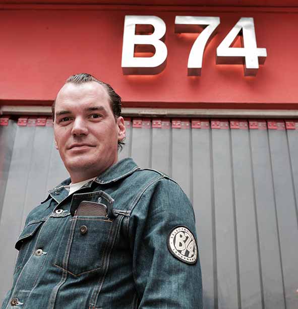 Second day @ B74 ORDERSHOW. Not such a smooth start as yesterday because of f***ing Frankfurt city traffic – a lot of road works: too much. Orange Beast brought me in under 15 Minutes from DA to FFM, but then it took me about an hour from the first FFM road sign to B74. Breathing … calm down … and then the sun went up, blue sky, just some cool clouds, the banking towers, the B74 sign, beloved SPIDERMAN: what a view, when you reach the parking lot of B74! This view compensated all trouble before. After the first espresso I started my daily tour and met a really good friend: Oli Breitwieser from RIDERS ROOM in Hamburg, Germany. It was 2 years ago we met the last time – damn. And it was an absolute pleasure to meet Sven Eden, the owner of RIDERS ROOM. Seen so often @ social media but today for the first time live – great! Some impressions from today. Enjoy – I did! For sure!! See you tomorrow! pics | LTG