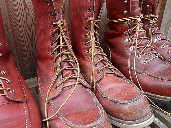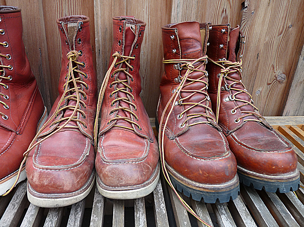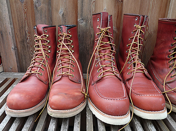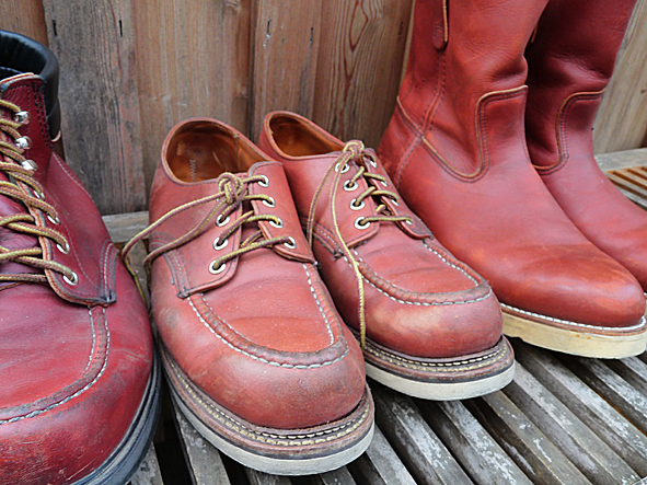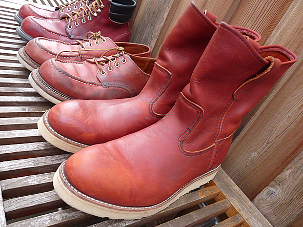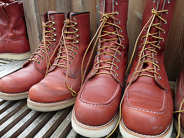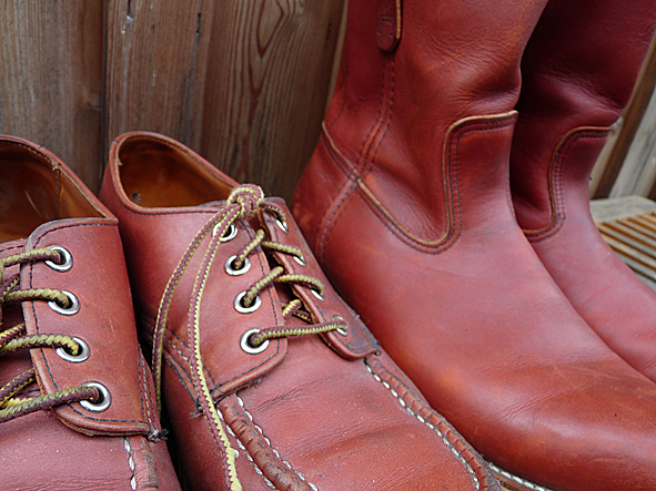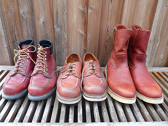 i did this post to show my buddy RON WELLDON how different the oro-russet color on RED WING SHOES could look like, because he asked me something about. so here you can see my oro-russet colored RWS line up. sure the color changes with every wear. it is certain that oro-russet gets darker. look at the vintage #855 and #877 irish setter. but even the new boots show some differences: #4558 and #2940. the #866 PECOS is vintage but not worn so often and it shows again another color. but as you know: we love this handmade stuff and i am really glad that the shoe color isn’t all the same. exciting. that’s one reason why i love to wear and own RED WING SHOES! pics | LTG