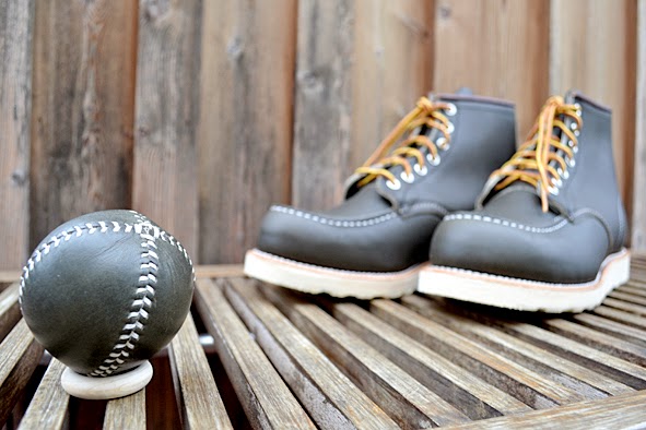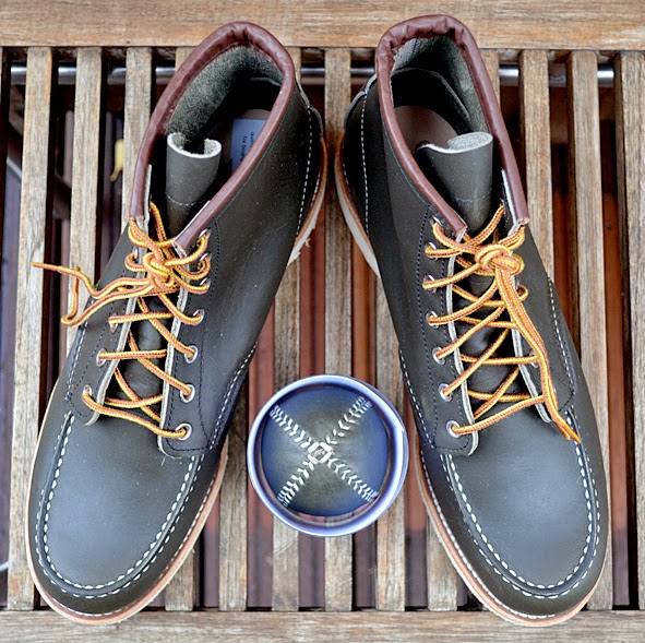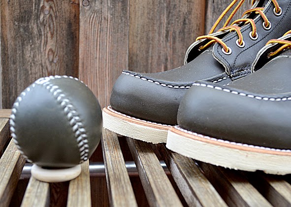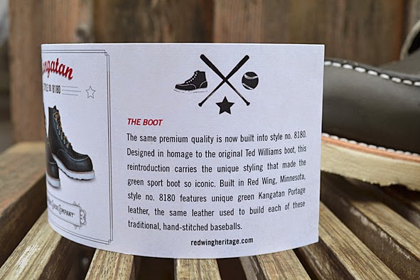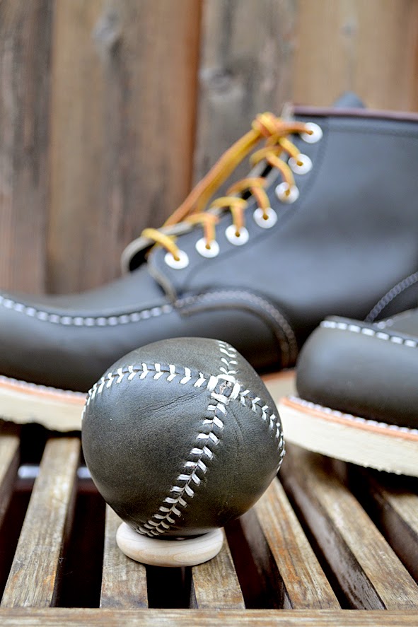 so the #8180 is made of unique green KANTAGAN PORTAGE LEATHER, the same leather used to build each of these traditional, hand-stitched baseballs … and sorry, you will not get the ball with you when you buy an #8180 … and this style is exclusively available at RED WING STORES around the world. really nice and so unique. hm, i love the color … and, i did NOT buy these boots yet. pics | LTG