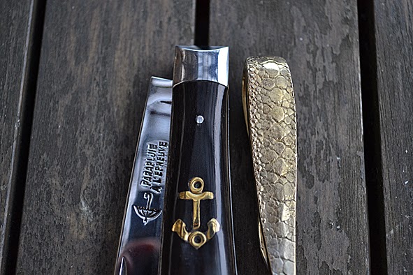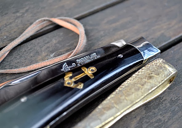 isn’t that a wonderful combination? i love it. the knife is made by PassionFrance® and the style is named LONDON. it is a maritime knife and because of this i like the combination of the stingray patterned bronze hook with the golden anchor – perfect content. next time i will do a special blog post about this wonderful knife. the hook is massive bronze and very well done – hand made by MARIA and MANFRED STROPPE c/o FEINSCHMUCK. ALEXANDER V. BRONEWSKI, who does the well known and fine because.blog, works also for FEINSCHMUCK. he gave me the simple but very nice and durable lace made of kangaroo leather. FEINSCHMUCK does a lot of hooks with different patterns and a lot of more fine accessories made of bronze and other materials. at their website you will find a list of stores where you can buy this beautiful stuff. PassionFrance@ knifes are available online at www.passionfrance-shop.de. pics | LTG
