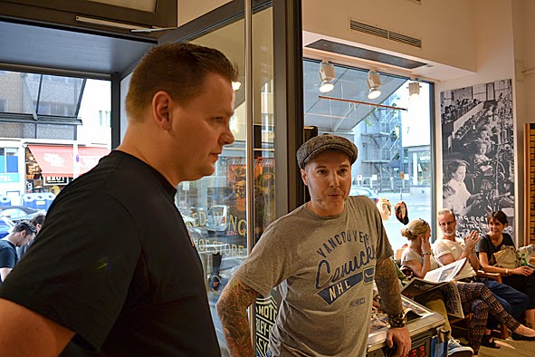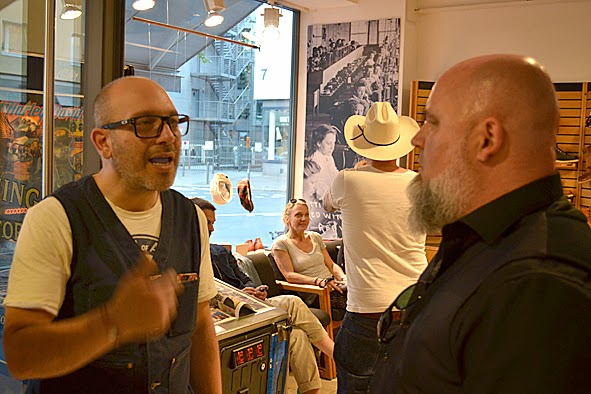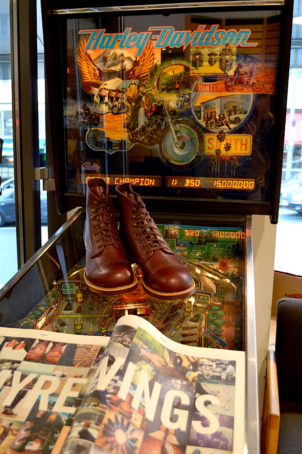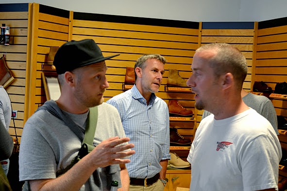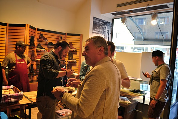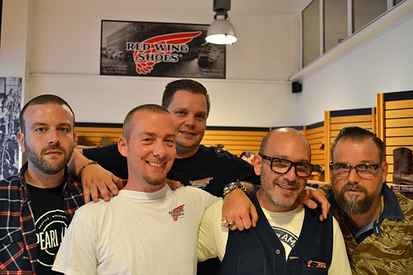 two days ago i did a trip to B-74 & AMTRAQ DISTRIBUTION order show in FRANKFURT/MAIN to check new stuff and meet some friends. at this evening there was the presentation of the #01 issue RED WING POST and the RWS MUNSON IRON RANGER style #8012 at the RWS STORE FRANKFURT. the publicatiobn and the boot … both are very well done and it was nice that this news were celebrated with a little party along with friends and RED WING aficionados. thx to KAMI, owner of RWS STORE FRANKFURT, and his team for this nice evening. and folks, pick up your free issue of the RED WING POST at your RED WING STORE in FRANKFURT, BERLIN, HAMBURG or MUNICH – the publication is only available at these stores! and it is a must to take a look at the awesome MUNSON boot which is strictly limited and also just available in the RWS stores. pics | LTG