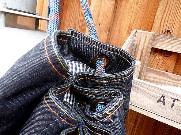 bought this years ago @ volls.de when ATLIER LA DURANCE was a really brand new label producing some small charges of denim – the quality and the making of the jeans was great. i think it was about 2005 or 2006. this haversack is a very nice piece but it was absolutely senseless for me. i preferred bags when going on travel, to get the things best handled. so it is like new, made of 14OZ weight japanese denim and saddle leather with a lot of nice details and heavy brass hard wear. it’s on ebay now. no life time gear for me … pics | LTG