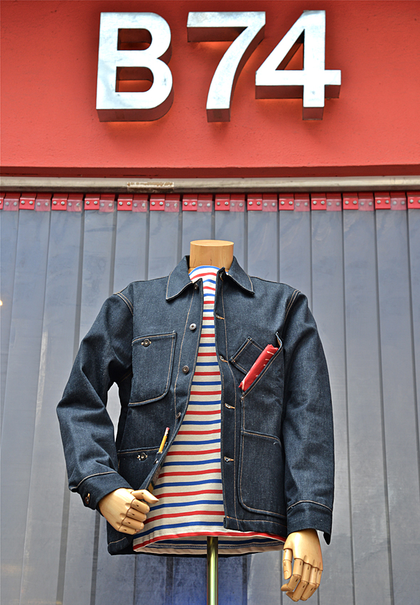 Last week www.b74.de did the first newsletter after the launch of their new online shop just a few days ago. When talking to the owner and founder of this great concept store Kami, the response was really good. So this weekend the next newsletter went out. After ”ALL IN BLACK” now a triple color combination is the motto: red, white and blue. This is not a statement “pro USA”, the B74 crew just likes this color combination of the back in stock Orcival Marine Shirt, the 16.5 oz Tellason Coverall Jacket and the Johnson Motors Bandana. pics | LTG & www.b74.de