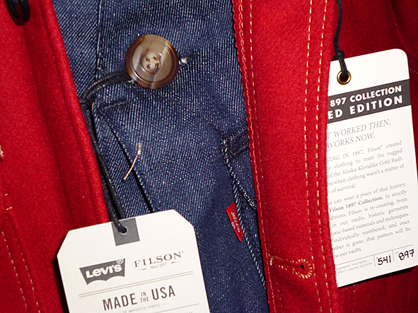 last fall i spoke to KAMI from B-74 if he could organize some limited pieces from FILSON and LEVI’S x FILSON for me. “no problem” – ok, in german we say: “ein mann, ein wort”. yep, 2 weeks ago the stuff arrived and last saturday i took it home. wow, i was really surprised about my new pure red icon FILSON SCARLET MACKINAW CRUISER JACKET and the sensational LEVI’S x FILSON vest, in dark snub denim – classic convenience and comfort merge. both pieces are made in the USA and have a lot of nice details – exciting. check the pics from filson. pics | FILSON, LTG