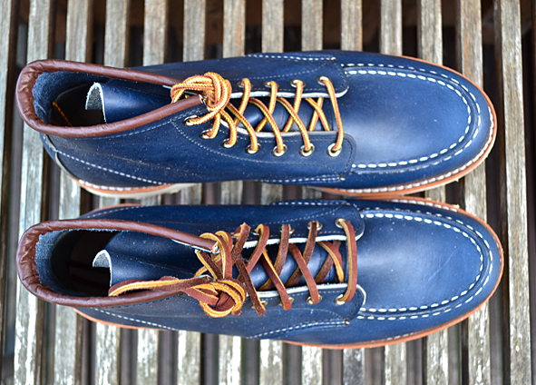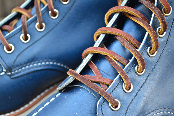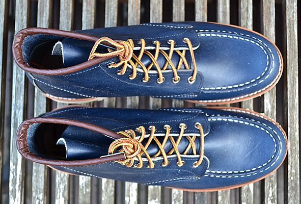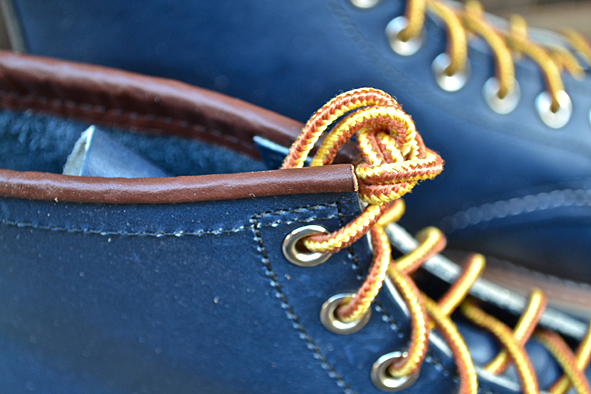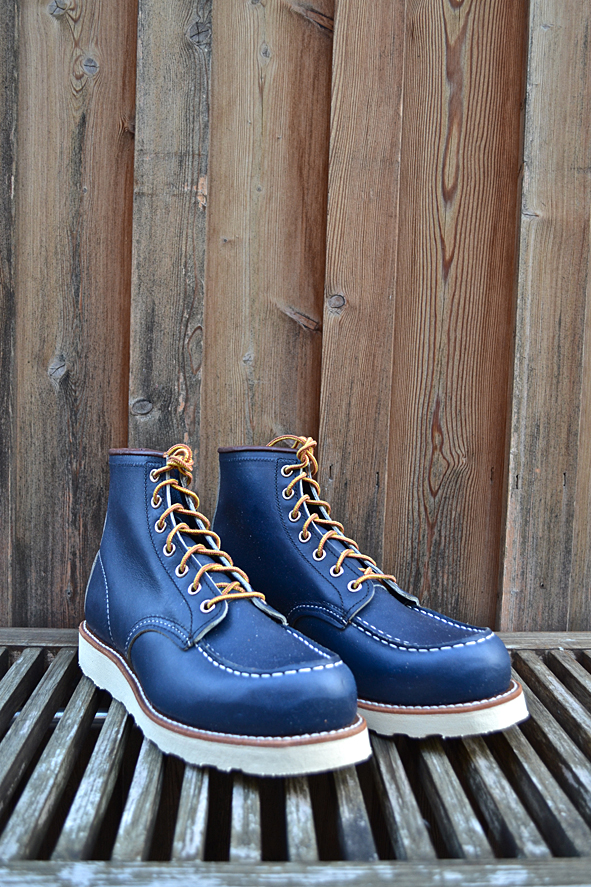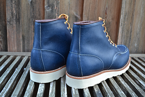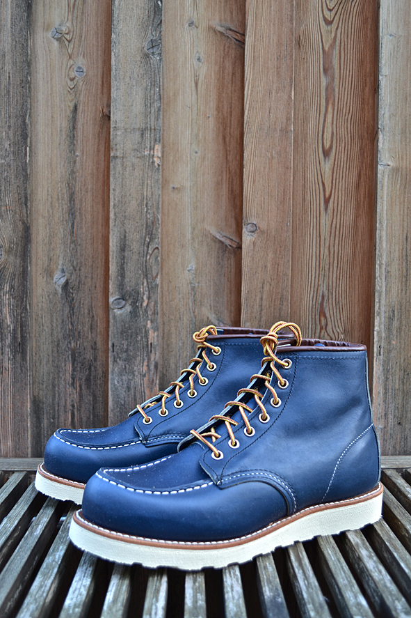 Constant readers of LTG Blog know that I like blue RWS a lot. Two years ago I got the indigo colored classic work #8100 Oxford from Japan and I still love it. The #8882 is the same shoe just 6″ high like the classic #875, moc toed, made of Indigo Portage Leather and completed by the Traction Tred Cushion Crepe Wedge. Very nice is the brown ending of the bootleg – a small detail, but I love the contrast between the rich blue and brown leather. Another nice feature: you don’t get only the standard Red Wing Shoe Laces but a second pair made of leather. The leather laces look very nice but for me these are not so practical. Okay guys … these blue beauties are limited – order your #8882 @ Red Wing Shoe Store Frankfurt online right now. pics | LTG