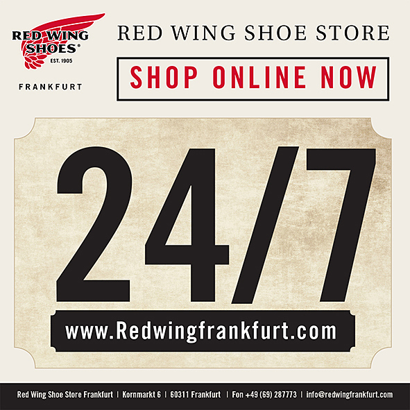 @ first some really great news for all RWS aficionados: The Online Store of Red Wing Shoe Store Frankfurt, Germany, has reopened after a complete relaunch: www.redwingfrankfurt.com! And I love this clean graphic style so much. I do not want to see the 877th rugged or vintage look-a-like page. Complements. Kami you did a perfect job with your team! So we did a test shopping some days before the shop went online … the result was the brand new limited RED WING #8882 – a perfect online order: Ordered in the morning and the next day the boot arrived. The online order process itself is very simple, fast and smooth … it works!