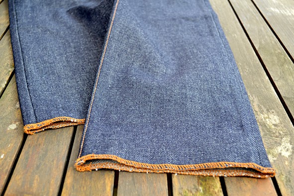 yes, today i got another xmas present. FRED c/o redwing.1905 blog brought me a special piece of denim from LOS ANGELES which he picked up there two weeks ago: a wonderful JOMO jeans made of vintage deadstock raw denim with a lot of details. thanks to SEAN, JULIO and EDDY from JOMO, LA. i think the denim is about 14.oz and the structure of the cotton is really interesting and looking old school. very nice the two different seams at the back pockets – good idea. my pant is the first made with this closed top button; the buttons before have had a whole in the middle. the legs are open seemed and the fit is really tight and tapered. for sure this rare piece of denim is handmade at JOMO headquater in LA by taylor JULIO. FRED took some photos when JULIO made MY JOMO jeans. so guys: thank you again! pics | LTG