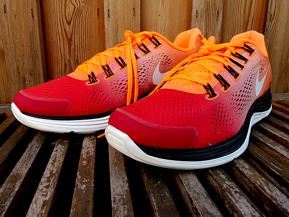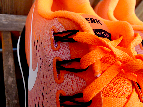 after breaking the 500 km mark in between 4 months intensive running and documenting the runs i decided to order a NIKE ID running shoe. after 3 weeks order time i got it. i was really excited how the shoes looks like … PERFECT. i designed my LUNARGLIDE+ 4 in bright orange/red combined with a black/white sole and a white swoosh. but the best is my name on the tongue. it is possible to place 4 letters on each tongue – i do not need more for my complete name. yesterday i wore it the first time and i ran a half marathon distance. it was a brave decision to do this distance with a brand new shoe, but i must tell you that the LUNARGLIDE+ 4 is really comfortable, much better than LUNARGLIDE 3. i have had absolutely no problems with my feet. pics | LTG