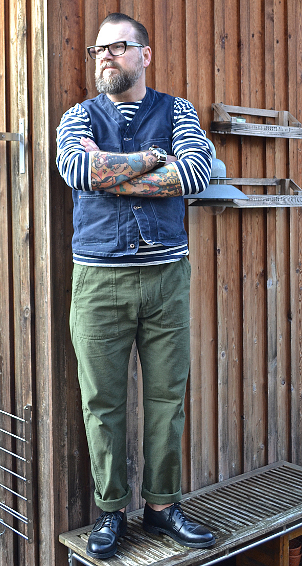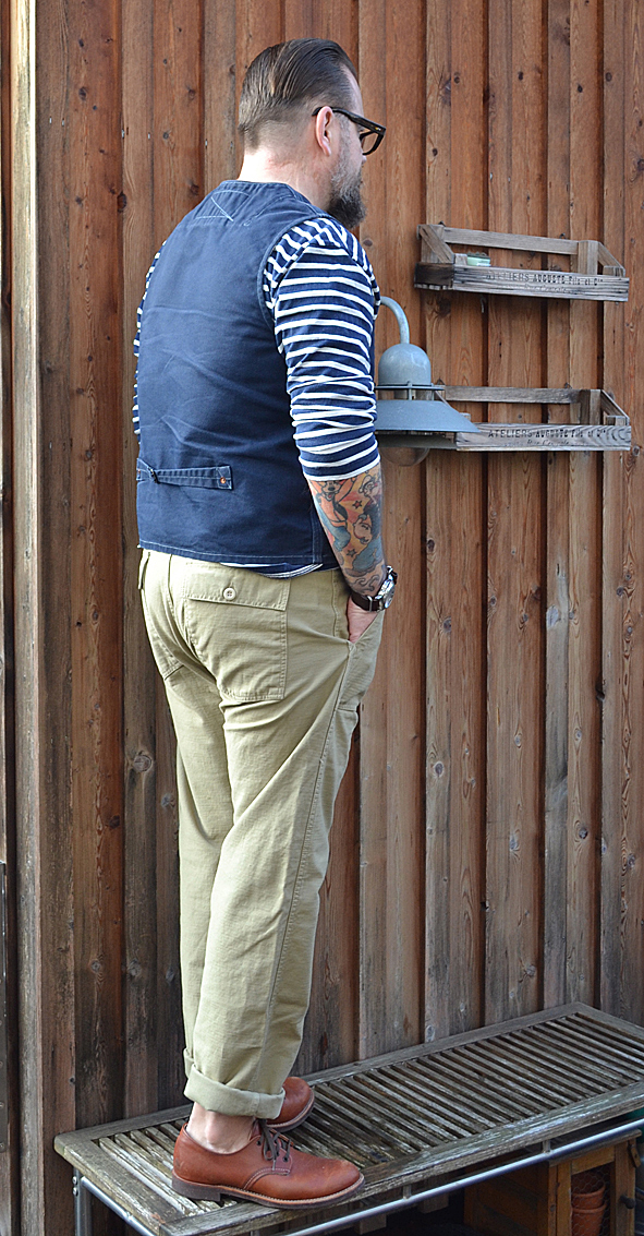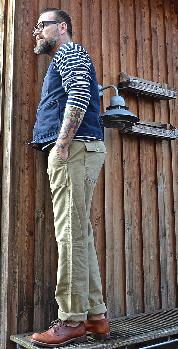In February 2016 I wrote a blog post about 2 TELLASON Fatigue pants made of 8.5 oz cotton sateen in Olive Green and Khaki. These 2 pants where my constant companions this summer. The guys @ TELLASON now did a third Fatigue Pant, which is even smoother than the first I got. I love this touch and feel from the first moment on I tried this pant. It is TELLASON’s take on the iconic OD-107 fatigue pant from the Vietnam area. The new Fatigue comes in 7.5 oz 100% cotton twill from Japan, raw and unwashed, but so comfortable. With a tapered leg, zip fly, flap back pockets. For sure made in San Francisco. For more information check the AMTRAQ site for dealers where to buy this nice TELLASON stuff or contact Kami @ B74. pics | LTG