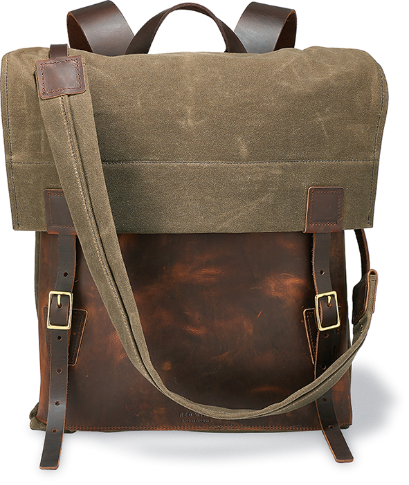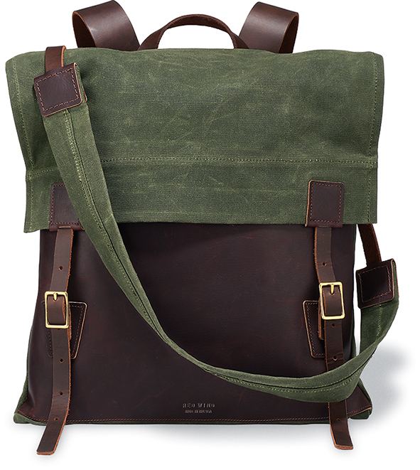 The Backpacks are inspired by classic packs, with construction and material updates that provide modernized comfort and lasting durability. Red Wing leather waxed canvas and solid brass buckles and rivets create a backpack that’s visually striking and supremely functional. Designed to match Wacouta footwear styles the Wacouta Backpack is distinguished in its details. Waxed canvas and Oil-Tanned leather deliver water resistance and durability while reinforced stitching and heavyweight leather straps ensure each pack is up for the rigors of everyday hauling.