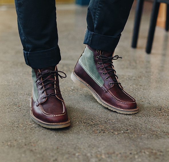 The Wacouta Boot is a casual lifestyle boot that blends premium Red Wing leather with waxed canvas from the longstanding American manufacturer, Fairfield Textiles. The mixed materials combine to create a supremely comfortable moccasin-inspired shoe. Built on a Honeywheat outsole with stitch-down construction the Wacouta’s lightweight flexibility makes for miles of comfort.