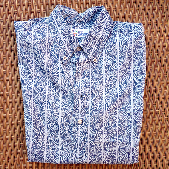 _ REVERSE PRIN. this means that the shirt is printed inside. so the pattern is not so expressive and looks smarter. a look like bleached from the sun and the saltwater.