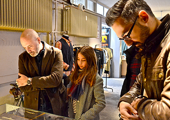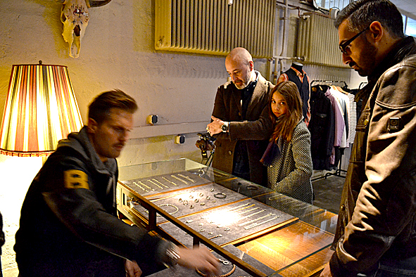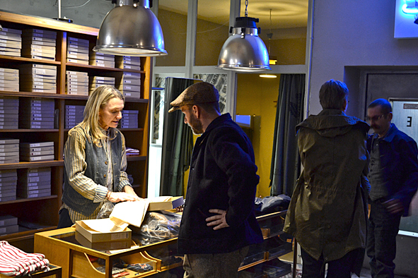 Yesterday I joined the 7th anniversary of B74-SELECTED GOODS. It was a must for me to visit Kami, the owner of this great shop, and his wife Iris. And it was a very fine but quite come together of friends after this horrible night before in Paris Friday 13th. It was obvious that something terrible happened … and we were talking about a lot. Me I wasn’t in the mood to do a lot of photos, but I did some … it was dark … so excuse me for the not so good quality at all. It was great to meet Frank Schulte in Person for the first time, the man behind the great Top Hatter blog. And if you have the possibility to visit and join B74 and its Sample & Vintage Sale you should do that the upcoming Saturday 21st of November: there are a lot of great offers in gear, accessories and vintage furniture, bicycles and so on. Great! pics | LTG