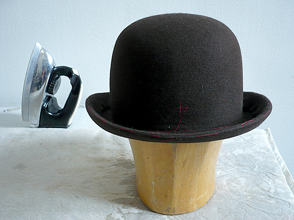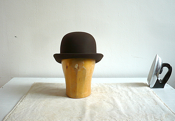 2 weeks ago i picked up my new brown BOWLER hat @ SCHMITTHUT. and sorry to say so, but it is true: STETSON, BRIXTON, BORSALINO and all the others, you do a very good job but there is no hat better than one made by hand especially for your own head. it is the same with a made-to-measure suit. SUSANNE made again such a great job and the hat fits more than perfect. it is the third hat she made for me and i love’em all. the next bowler is in progress: made of straw for summer. pics | Susanne Schmitt, LTG