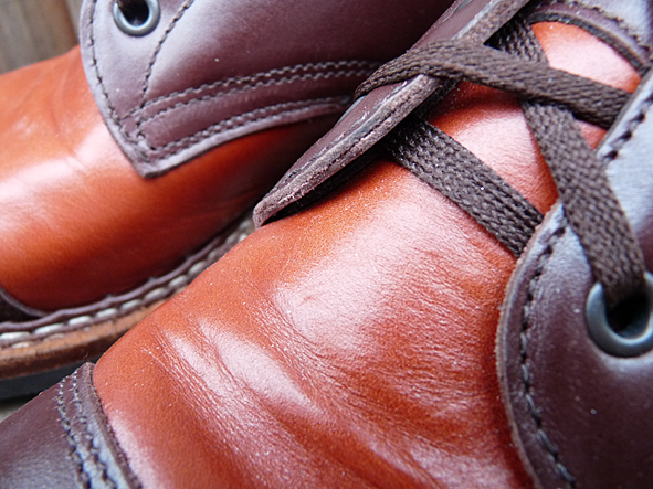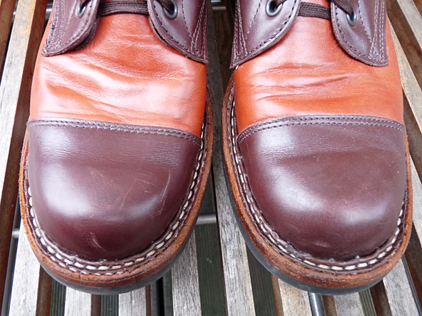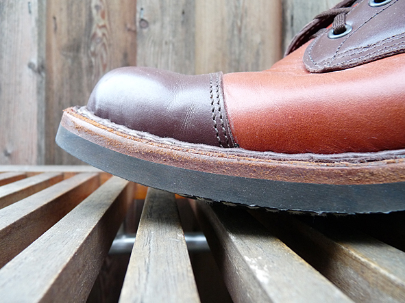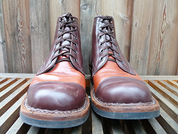 i think this boot is one of the most exciting work boots i own: 2 colored with a touch of the 30s and 40s but so strong and heavy for what WHITE’S BOOTS are known for. but at the same time so smooth because of the used leathers. the color combination of smooth light brown water buffalo and dark brown french calf is so beautiful and extraordinary. my feet never, really never, get hurt by a WHITE’S BOOT when wearing the first times. i remember me ordering the first time a WHITE’S and i just ordered the size i knew from other work boots i wore at this time and the choice was perfect. often i read that WHITE’S fit larger – i can’t say that. i have absolutely the same size in WHITE’S as in f.ex. RWS, DANNER, YUKETEN and ALDEN boots. but i must say WHITE’S are the most comfortable ones, but at the same time weighing most.
