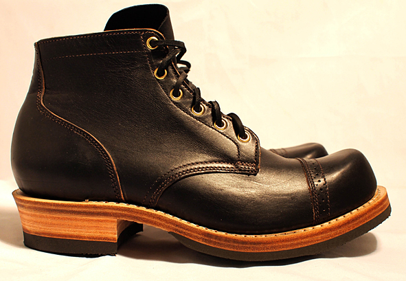 2 months ago i did a post about my VIBERG SERVICE BOOT 1950 in black with a DAINITE SOLE. todays #26 boot of my collection is the same boot just brown colored with another sole, the WHITE CRISTY VIBRAM 4014. as the pics show, i did not wear this boot so often. i prefer the black SERVICE BOOT with its DAINITE SOLE much more. i think this sole fits the look of the boot much better. the #4014 is comfortable but it looks like a contemporary compromise to me. when i wear this boot sometimes i think if i wear a hybrid between a RED WING BOOT and a VIBERG. for sure this VIBERG SERVICE BOOT is a really perfect and best made boot but not my favorite one. if it might be yours, you can get it @ volls.de. pics | LTG