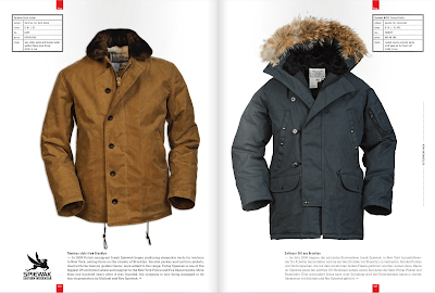 when i went to the post office yesterday i did a short turn to VOLLS, checking some new stuff KLAUS got the last days. i was really excited about the new SPIEWAK GOLDEN FLEECE jackets. especially the WAXED DECK JACKETS i like a lot. these DECK JACKETS were some of the most favorite jackets for the US FORCES in the 1940s. SPIEWAK was the official manufacturer of the us navy and air force and so the first maker of the nowadays famous and classic deck jackets. they are available in classic olive and navy blue with a shearling collar. both are made of waxed cotton. the camouflage jacket is an absolute damn f***ing must-have item. it is really special but so nice. i am sorry that i don’t have any more informations about it – i was flashed that i forgot to ask KLAUS about some facts. check volls.de, i think the jacket will be soon online in KLAUS’ shop – the deck jackets are online right now. the down filled AVIATION SNORKEL PARKAS are a contemporary interpretation of the famous and classic N3-B PARKAs from the 1950s. these are nice too but mainly useful with their TEFLON coated, wind and water resistant outer fabrics and a lot of other practically features and details. And especially the price is unbeatable for such a jacket. check the stuff @ volls.de for more information. pics | LTG