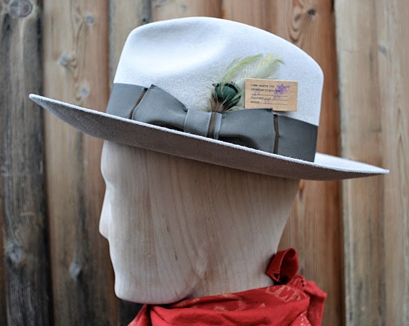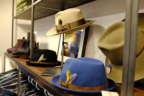 just saw a pic of the new munich denim store STATEMENT posted by founder & owner KAY KNIPSCHILD and i felt in love with this wonderful hat. two days later this great lookin’ STETSON was put to my hat collection @ the LIFE-TIME-GEAR office. the CORDELE is made from premium quality fur felt, fully lined in a gold-bronze STESON fabric and there is a leather sweat band on the inside. the nice grosgrain band around the hat crown carries a wonderful colored feather. the crown is about 10 cm high and the brim 6cm wide. i love the look of the hat so much because with the brim turned up this fedora is such a nice mix between a classic fedora and a western-look-a-like hat – just perfect.