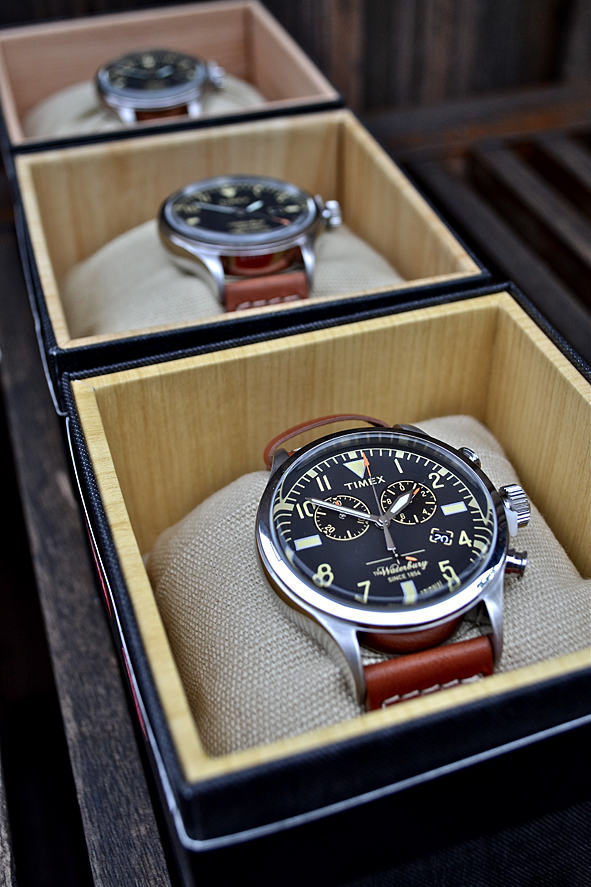 Originally these TIMEX x RED WING SHOES COLLABORATION WATCHES were just sold in Japan. Online in Europe just @ endclothing but right now RED WING SHOE STORE FRANKFURT got a strictly limited supply. You can buy the watches online – the only dealer in Germany – or directly in the store. The collaboration watch is available in three styles and sizes: 38 mm, 40 mm and a 42 mm Chrono. Each watch features vintage-inspired dials, stainless steel casing, is up to 50 meters water resistant, INDIGLO@ Night Light and Quick Date®. But the icing on the cake is that each watch is outfitted with an awesome premium leather strap supplied by the master tanners at RED WING SHOES – handcrafted for sure! I don’t know exactly what leather color the strap has. It is similar to the famous Oro-Legacy (oil tanned) former known as Oro-iginal but a little bit darker, no more colorful. This leather is used for the icons #875 Moc Toe and #877 Irish Setter. The watches come in a very nice designed box. For a timepiece styled on historic designs with a premium leather band that will age beautifully these watches are incredibly affordable check it @ RED WING FRANKFURT’s ONLINE STORE or directly in the store … remember: these are strictly limited! pics LTG | RWS