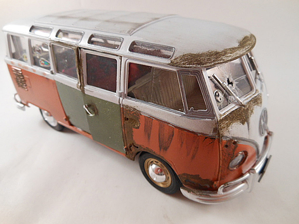 nice find on ETSY. JOHN FINDRA from south carolina is a retired business man “who decided to start making junkers” in 1-24th scale. after selling the first models on his wife’s ETSY site he started an own shop named “CLASSICWRECKS”. JOHN wrecks and rusts the cars and put on extra details and paintings by hand. he loves working with a lot of different materials like plastic, wood, metal and wires. great idea, super results – unique! photos | JOHN FINDRAS