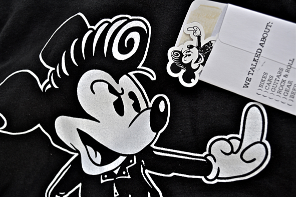 Yesterday I went to the customs to pick up my “Greaser Mick” collaboration t-shirt. Following TSY “THE SELVEDGE YARD” from the first days on I am interested in checking cool blogs, I was so happy to get this extraordinary t-shirt. What a cool motive for me as a great DISNEY and Rockabilly aficionado. The illustration was made by NICK THE TAILOR a Philadelphian artist and tattooist – very well done Nick! The shirt is high quality printed in Philadelphia on a 100% cotton American Apparel stuff made in the USA. Because of a good working networking I saw this great shirt the first time at DON SCHWEDEs Facebook site linked to his great blog “THE LAST DON” – thx. pics | LTG