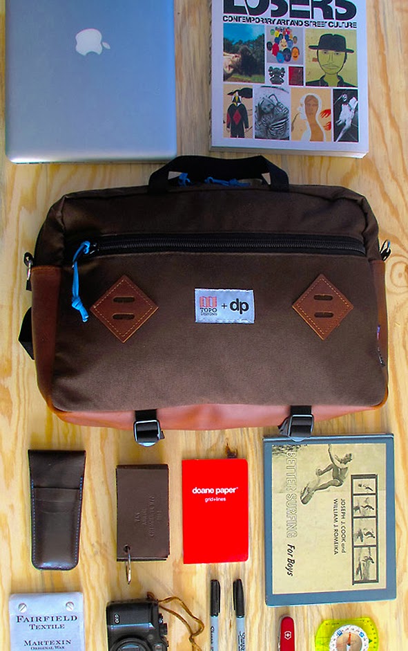 this is what i call a successful collaboration. this TOPO DESIGNS MOUNTAIN BRIEFCASE looks wonderful in that special color combination and features certainly all the practical benefits you know from TOPO DESIGNS or expect from a good bag with this size: Dimensions: 11″h x 16″w x 4.5″d, Volume: 792 cu. in./12.9 L. for details please check the doane paper® site.