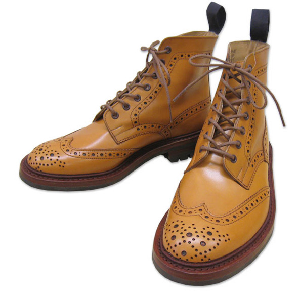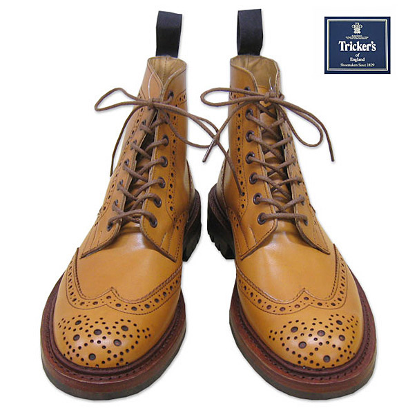TRICKER’S COUNTRY BOOTS are made in NORTHAMPTON, england. not a workboot but anyway this boot has a classic men-looking and rough character. i love the light brown color in combination with the brogue and the commando sole; 100% calf leather, antique stow brogue, hand-made in england. the official style is named MARTON M2508 COUNTRY BOOTS COMANDO SOLE. this is what a call a classic boot. pics | super rag, japan