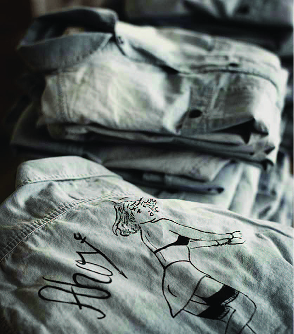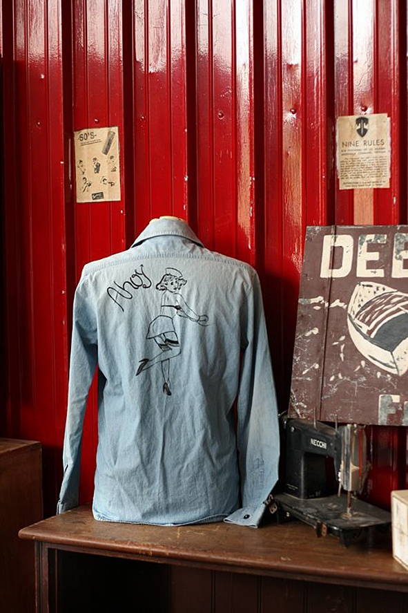 yet another company distributed by UWE’s AMTRAQ: Sportswear reg. A young italian company, born in 2008, influenced by used american apparel from gyms, military and workwear – from the 30s to the early 80s. i did not see anything live but the stuff on the pics UWE sent me looks really authentic with a lot of love for details – i like this style very much. all pieces are produced with original fabrics and prints; the labels and hangtags are hand stamped. and very special – good idea, because i love limited stuff: every season there will be 1 shirt und 2 t-shirts hand-painted, delivered in a special box – strictly limited. exciting. UWE, the LAMBCHOP cards are stored in my cupboard. hope to see your showroom before the gig. pics | AMTRAQ
