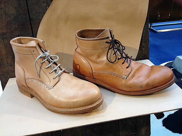 Today, back to the boots. My buddy WOUTER c/o BUTTS AND SHOULDERS and LONG JOHN blog send me some pics of the new B&S boot which had its premier @ the MODEFABRIEK FAIR AMSTERDAM a few days ago. Very nice.This classic boot is made in Portugal from a natural vegetable tanned leather and it is fitted with a GOODYEAR welted construction. Look at the pics – the leather is aging so wonderful. The boot isn’t available yet. Check the BUTTS AND SHOULDERS site frequently for more informations. pics | Wouter Munnichs © Butts and Shoulders