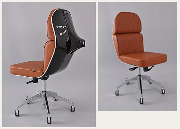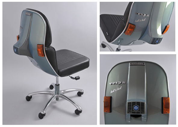 great idea. the seats are made from original pieces of the legendary PIAGGIO SCOOTER. the real one with the old school figure, the traditional one, the one and only … there are some more made by italian BEL & BEL. beside they do a FIAT 600 SOFA and CD RACK, lights, sculptures and so on. i do not like all of their stuff but check www.belybel.com and you’ll have fun. pics | bel & bel