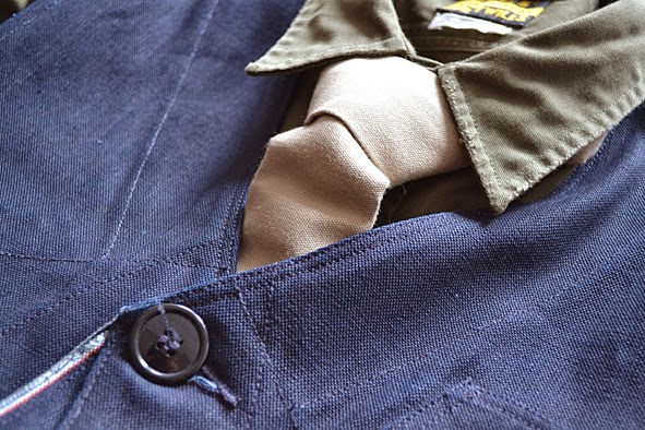 The last days Frankfurt/M located Concept Store B74 Selected Goods posted some very nice outfit shots on Instagram ›› #b74selectedgoods. From above: Thedi Leathers Jacket made with old Military Canvas & brown Buffalo Leather. The unique Thedi shoulder bag is made out of a stiff brown cowhide Leather. Second combo: Fleurs de Bagne Coat made with Navy British Millerain Fabric, JK Vest from Tellason Navy Duck Canvas with white contrast stitching. Tellason utility Shirt Blue / White checked. Third combo is a complete Tellason outfit: Jacket Olive Field Blouson, Vest Olive JK Vest, Shirt Orange Checked Utility Flanel.The last jacket is a from Thedi Leathers: