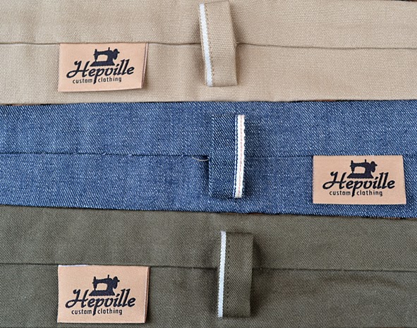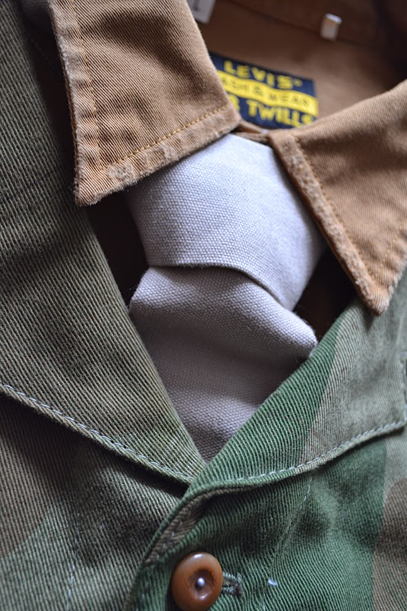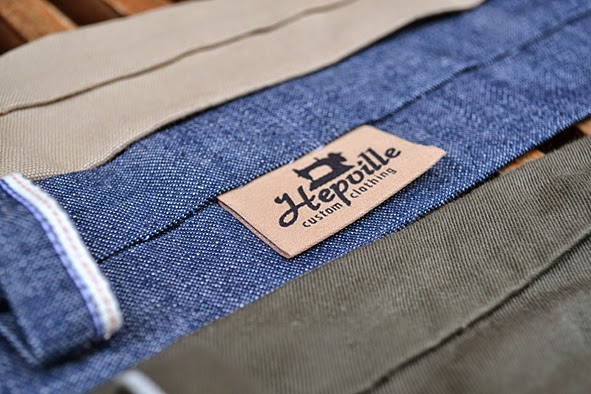 as you know i am a fan of bow-ties. 2 months ago i bought the first neckties ever. both patterned: one camo and one with anchors – what else –, i learnt how to tie the “AMERICAN” way and just some days later i discovered HEPVILLE’s DENIM SELVEDGE NECKTIES at facebook. it took me 3 weeks more to think about if these are must-haves. and indeed they are. each necktie is made of 8oz. selvedge denim, has a loop strap with selvedge details, are 57 inch/144 cm long and 2 9/16 inch/6,5 cm wide at the end. they are hand sewn shut with a hidden slip stitch. the blue one has white and red selvedge at both ends, the khaki beige and green neckties have white selvedge at the ends. for sure this stuff is handmade in germany by BELA the man behind HEPVILLE CUSTOM CLOTHING. check his ETSY shop there is much more great stuff like caps, vests f.ex. pics | LTG