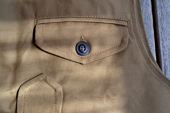 A while ago I went with my family to MANUFACTUM, Frankfurt/Main as we often do on Saturdays. It’s great to have breakfast there … such kind service, best selfmade food and a great view to the “Alte Oper” (opera) Frankfurt. After breakfast we walk around looking about. Just nice. So I found this nice Tuscan Hunting Vest by Italian manufacture GRP which I mostly know for their well done knitted fabrics. Saw this vest … had to take it with me. I love this style, this large curved pockets. Nice to wear with its 100% chambray cotton lining. It is made of cotton, has 2 front pockets, 1 small breast pocket and a large back pocket as usual for hunting vests. Really practicable: 2 inside pockets with zippers. The buttons are made of horn – very nice. The vest isn’t too heavy, nearly smooth. You can get it directly from MANUFACTUM’s online store. pics | LTG