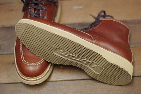 today a boot from great WHITE KLOUD CUSTOM BOOTS shoemaker, japan. looks very classical with a fat double stitched VIBRAM # 705 sole. here some other facts: WHITE KLOUD handsewn welted construction, double mid sole double stitch, VIBRAM #705, inside leather toe cap, HORWEEN Leather CHROMEXCEL/dark olive, USA/ made solid gunmetal eyelets & stud fooks, leather lining. love the color – very nice, kick ass! pics | WHITE KLOUD
