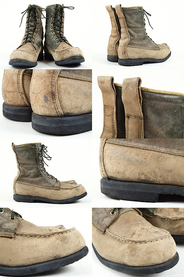 damn, what’s that? never saw this color combination before. never ever … this 2-colored boot looks lihe a hybrid from a vintage RED WING 877 IRISH SETTER and a RED WING 214. but the sole isn’t a crepe but a rubber sole. hm??? does anybody knows this RWS? i found this spectacular boot on a japanese website and i could not find any style description. the boot must be from the 70s they said. pics | rakuten