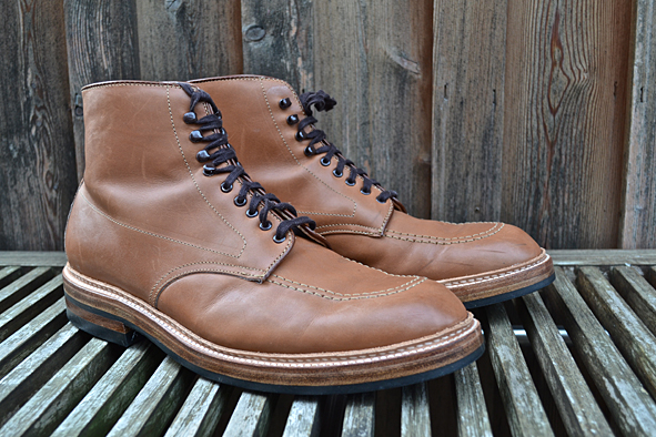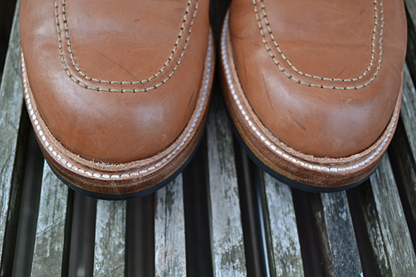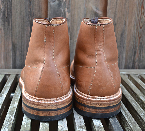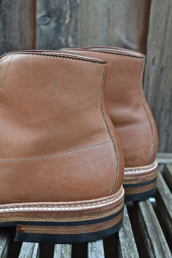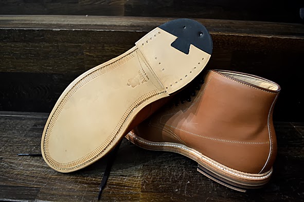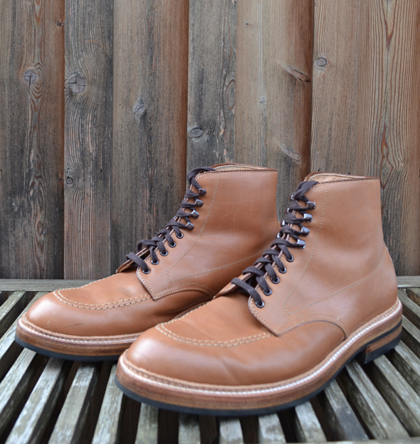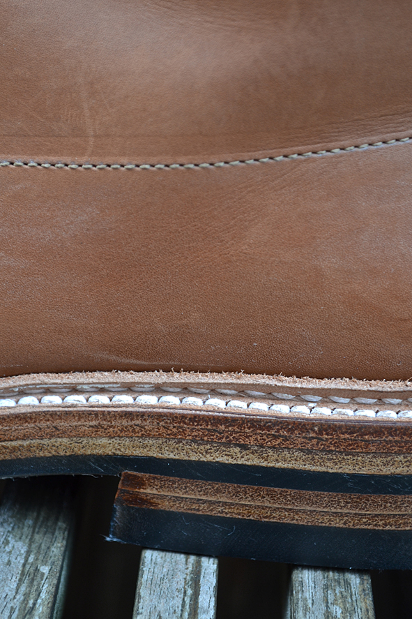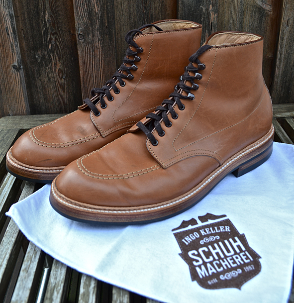 Hi guys, long time no blog … I am sorry, but my real life needs me: toooooo much work, a lot of trouble the last weeks. I hope it will get better now. Yesterday I wore these amazing customized ALDEN x VOLLS INDY BOOTS for the first time after customized by INGO KELLER who runs SCHUHGOTT in Cologne, Germany. And I must tell you, that these boots were much more comfortable to wear than before: great walking. I bought these ALDEN x VOLLS cooperation boot 2 years ago and I wore it just several times. I am not a friend of “just leather soles”. I know that a lot of you will say “Damn this boot looks quiet smarter with a pure leather sole”, but I didn’t like it. I wore too often work boots and heavy western boots. When I wear a boot or a shoe with a leather sole I have the feeling wearing ballet shoes, not to mention about the grip. INGO put classic DAINITE sole and heel under a double leather sole construction and I love the look now – and the comfortably. A really clean and perfect work for my now daily ALDEN. If you want to customize your boots or shoes just contact INGO. He is open minded to your wishes and a specialist for Red Wing Shoes resoling: