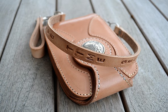 Amazing: there is a new brand available at B74, Frankfurt, GER. A Japanese one named “RINOUMA – MADE IN JAPAN”. They do wonderful bags, wallets, belts and are specialized in brass, using just Japanese manufactured materials only! Traditional work meets contemporary style. Today I will show you the long & short wallet with a fitting key chain and brass hooks. The wallets are made of steer hide leather tanned in Japan. At first the people at RINOUMA tried to make the wallets of Japanese saddle leather, which was nice, but a little bit too hard and stiff for wallets. So they tried to find a more soft feeling leather. They found a leather which is made by a small second generation family tannery, operating since 1921, in Hyogo, which is the most popular leather making prefecture in Japan. There is a clean river and always good winds for drying the leather – a perfect climate. This is the key to the finest quality for RINOUMA’s leather. It is a 3.3 to 3,7 mm thick steer hide leather. Craftsman add oil to the leather by hand for a varnishing finish. So the wallets get this so nice touch and feel. The brown color is also very clean and beautiful dyed. RINOUMA just uses premium Japanese brass parts. The zips run easy and the buttons work perfect. Men, take a look at these nice hooks. The key hook and the one with the wallet chain have a light bend, and so they hang perfect at your belt loop. Hooks and chain are handmade and made of 100% Japanese brass. Chains are manufactured by a vintage “chain-making-machine” older than 50 years. The hooks have such a wonderful matte finish which feels so nice. For me a perfect combination to the short wallet – I love it. AND, every piece is comes in a green paraffin coating canvas sack! If you got curios or interested in the great Japanese RINOUMA stuff, please write Kami owner of B74 – info@b-74.de – or give him a call: +49 69 293329. The next days I will show more RINOUMA stuff. You’ll like it – I am sure! pics | LTG