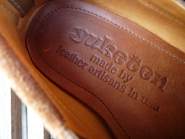 volls.de got a new delivery from YUKETEN. some new boots and very nice bags. there is a new boot i never saw before: the PLAIN TOE UTILITY BOOT in moss suede with a white contrast heel cap. a great color combination which is completed by one of my favorite VIBRAM soles: the # 2021 in grey brown. beside the suede version of this UTILITY BOOT there is another boot in a chestnut brown smooth leather also with the #2021 sole. this boot looks a bit smarter and classic. pics | volls.de