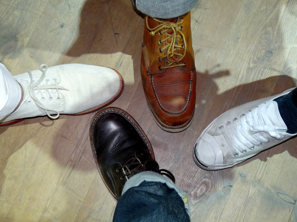… and i met a lot of friends and LTG follower. it’s so great to meet those people i just knew from FB or blogging. now i have a voice and a face to all these guys and all, yes ALL, are so kind and respect my LTG blog. thanks for this. check banditbloggers.com for impressions from BREAD & BUTTER, BERLIN. the pic shows UWE MAIER’s white YUKETEN bucks, FRED’s RWS 875, MAX’s JACK PURCELL and my WHITE’S HORWEEN SEMI DRESS BOOTS. pic | LTG