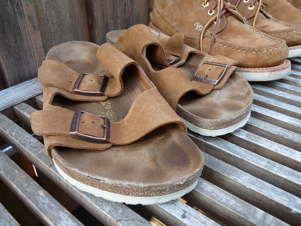 since days it is summer in germany. real summer. everyday about 25 – 30 °C with nice winds, really comfortable and smooth. beside the YUKETEN ANGLER MOCs i prefer wearing my BIRKENSTOCKS. love the brown suede colored lightweight leather and the white soles. 3 days are left before going on summer holidays to spain … work is still stressing … pics | LTG